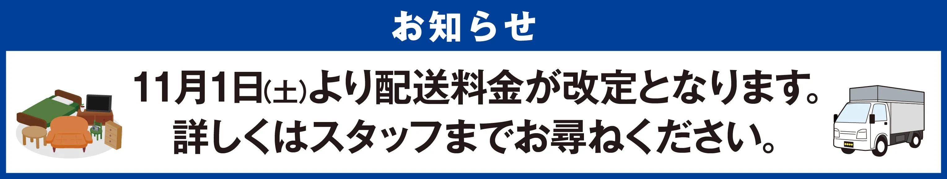 お買い上げ商品の配達料・引取処分価格は以下のとおりとさせていただきます。